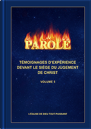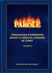 Dieu Tout-Puissant, Christ des derniers jours, qui est apparu pour faire Son œuvre, exprime toutes vérités qui purifient et sauvent l’humanité. Toutes sont incluses dans La Parole apparaît dans la chair. Cela a réalisé ce qui est écrit dans la Bible : « Au commencement était la Parole, et la Parole était avec Dieu, et la Parole était Dieu » (Jean 1:1). Quant à La Parole apparaît dans la chair, c’est la première fois depuis la création du monde que Dieu parle à toute l’humanité. Ces déclarations constituent le premier écrit délivré aux hommes par Dieu pour les révéler, les guider, les juger et leur parler cœur-à-cœur. Ce sont aussi les premières déclarations par lesquelles Dieu fait connaître aux hommes Ses traces, Son lieu de repos, Son tempérament, ce qu’Il a et ce qu’Il est, Ses pensées et Son attention pour l’humanité. Nous pouvons dire que ce sont les premières déclarations adressées par Dieu à l’humanité à partir du troisième ciel depuis la création du monde. C’est aussi la première fois que Dieu apparaît à l’humanité par des paroles et exprime la voix de Son cœur en utilisant Son identité propre. « La Parole apparaît dans la chair » (en abrégé, « La Parole »), exprimée par Christ des derniers jours, Dieu Tout-Puissant, comporte actuellement sept volumes : le volume 1, « L’apparition et l’œuvre de Dieu », le volume 2, « Sur la connaissance de Dieu », le volume 3, « Discours de Christ des derniers jours », le volume 4, « Exposer les antéchrists », le volume 5, « Les responsabilités des dirigeants et des ouvriers », le volume 6, « Sur la poursuite de la vérité » et le volume 7, « Sur la poursuite de la vérité ». -