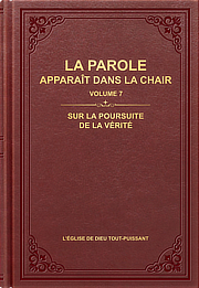 La parole apparaît dans la chair, volume 7. Sur la poursuite de la vérité contient l’échange et la prédication spécialisés de Dieu Tout-Puissant, Christ des derniers jours, aux Églises. Ces sermons et cet échange expliquent clairement et de manière transparente ce que signifie poursuivre la vérité et quelle est l’importance de la poursuite de la vérité, en révélant les diverses idées fausses et compréhensions déformées de l’homme sur la poursuite de la vérité, ainsi que les différentes pensées et opinions erronées de l’homme, et ses notions et imaginations, tout en les disséquant et en les discernant. De plus, ces sermons et cet échange indiquent à l’homme les chemins pour poursuivre la vérité et entrer dans la réalité. Ces vérités sont d’une importance cruciale pour ceux qui poursuivent la vérité afin d’obtenir le salut. -